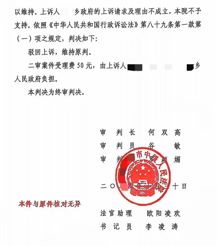 2024年7月22日,县法院判决确认乡人民政府于2023年7月9日强制拆除原告厂棚设施的行为违法。乡人民政府不服一审判决,上诉至市中级人民法院。2024年10月10日,市中级人民法院开庭审理本案,并于10月30日判决驳回上诉,维持原判。